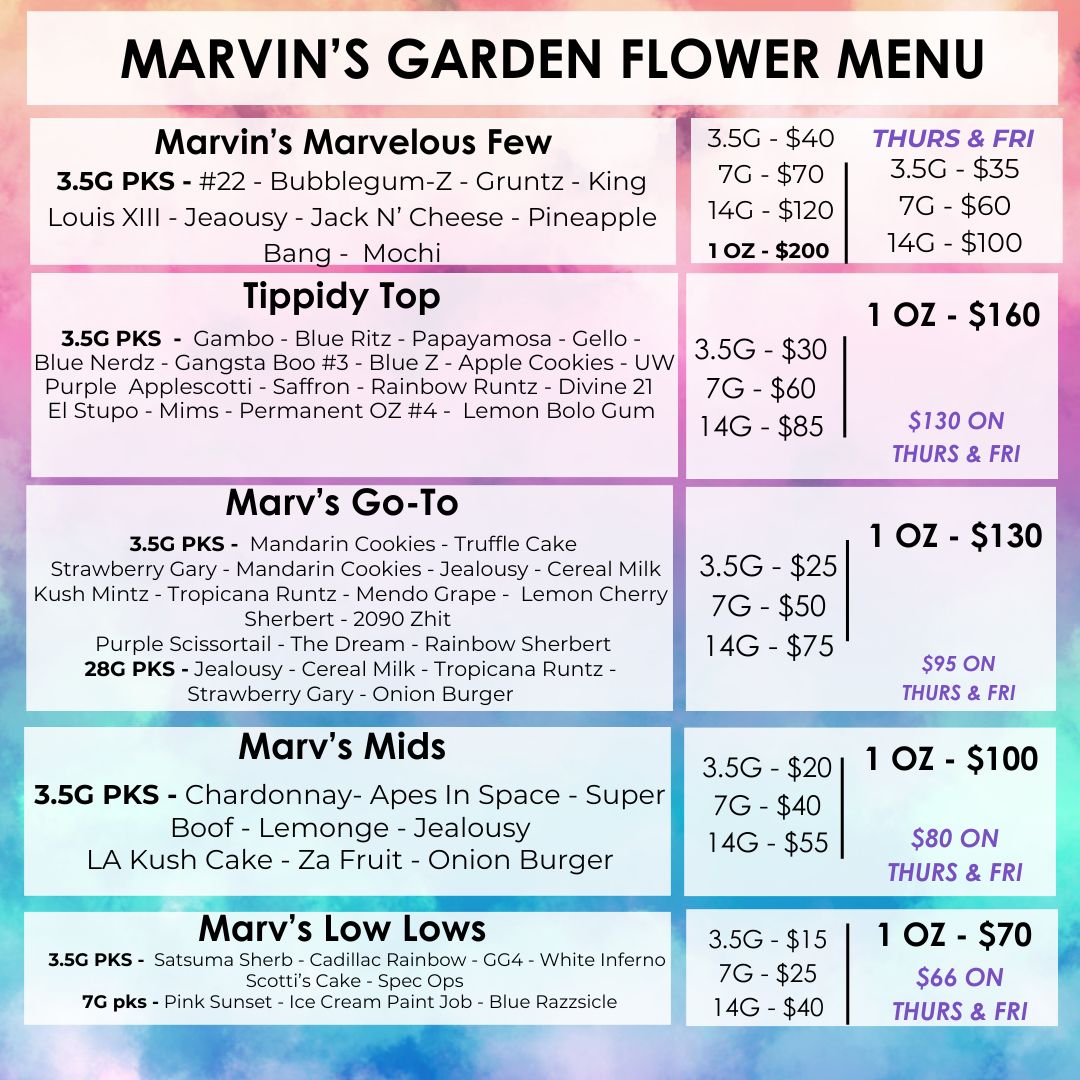 “I recently visited Marvin’s Garden for the first time and was blown away by their customer service. The staff was friendly and welcoming, and helped me find the perfect strain for my needs. The dispensary itself was clean and well-organized, making the shopping experience a breeze. I will definitely be returning to Marvin’s Garden in the future.”